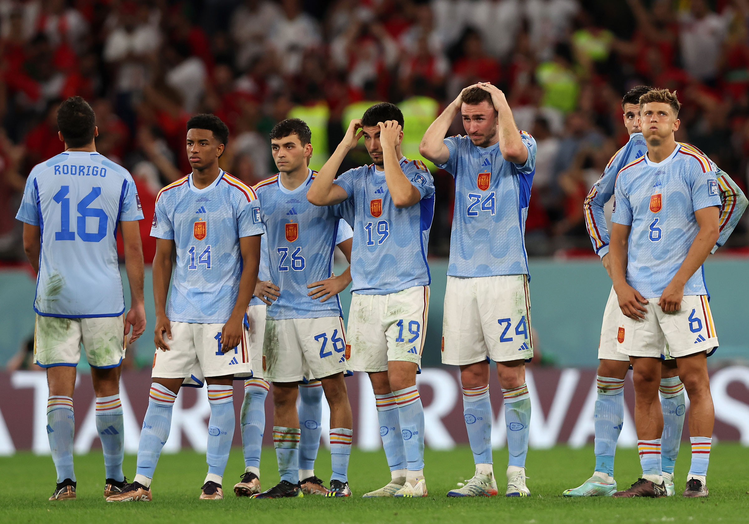 لم يتمالك لاعبو منتخب إسبانيا أنفسهم عقب الخسارة المدوية أمام المغرب بركلات الترجيح 3-0 في ثمن نهائي كأس العالم 2022، ودخل عدد كبير من اللاعبين في نوبة بكاء.