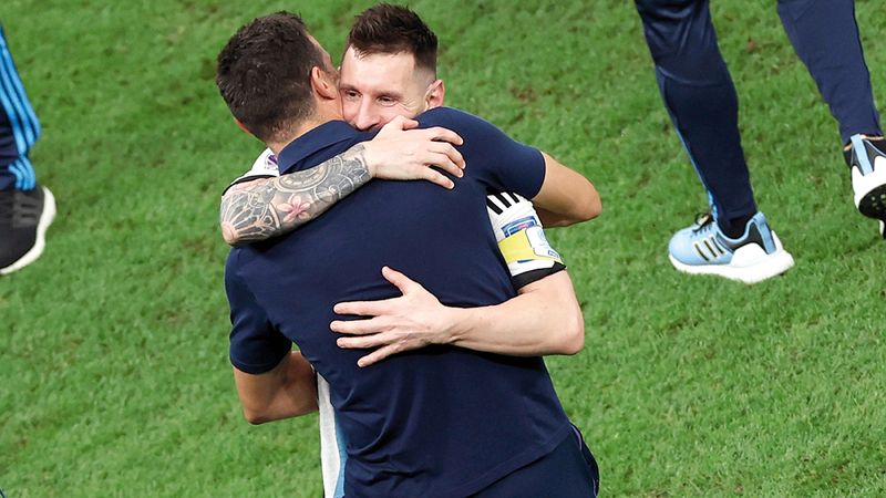 وأثنى سكالوني بشكل كبير على النجم ليونيل ميسي، الذي سجل هدفاً وصنع هدفاً آخر أمام كرواتيا، ليكون بذلك قد أسهم في تسجيل خمسة أهداف، وصناعة ثلاثة أهداف من إجمالي 12 هدفاً للأرجنتين في المونديال الحالي.
