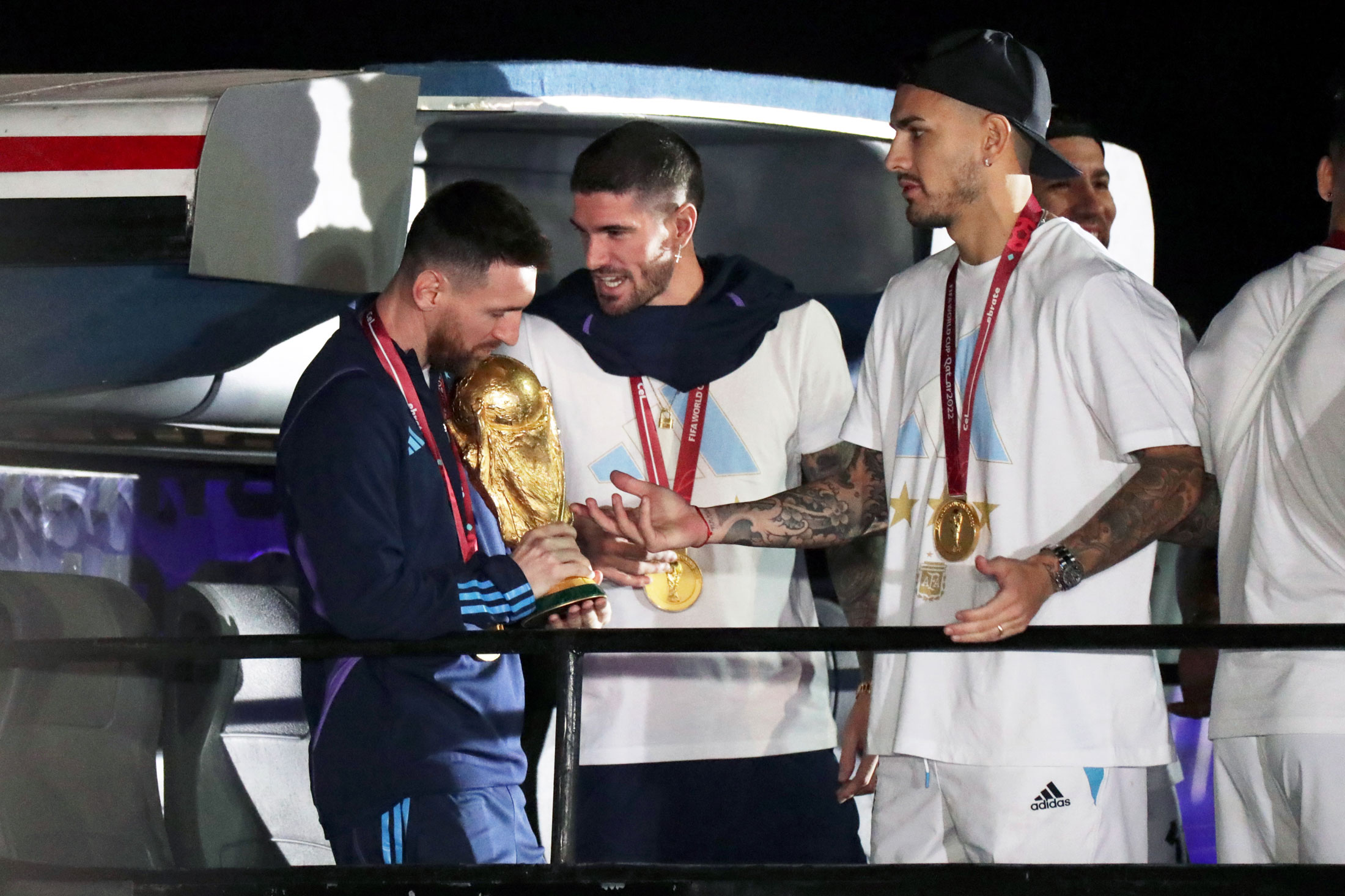 وبعد فوزهم على فرنسا في نهائي كأس العالم الأحد في مباراة مشوقة، سيمضي اللاعبون ليلتهم في مجمع تدريب الاتحاد الأرجنتيني لكرة القدم قرب المطار حيث ينتظرهم آلاف المشجعين للترحيب بهم.