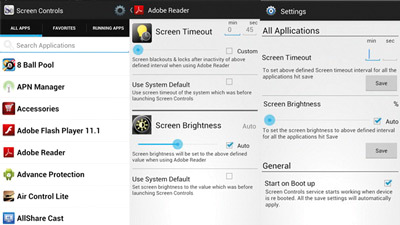 ولحل هذه الإشكالية، يمكن استخدام تطبيق Screen Controls، الذي يسمح بالتحكم بدرجة سطوع الشاشة والمدة التي تنطفئ بعدها الشاشة لكل تطبيق على حدة.
