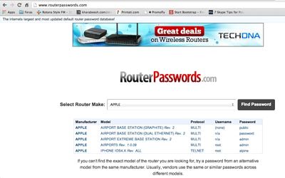 إلا أن المشكلة التي تواجه المستخدم هي معرفة اسم المستخدم وكلمة المرور الخاصة للدخول إلى لوحة التحكم، لذا يمكن الاستعانة بموقع http://www.routerpasswords.com/ الذي يعطي اسم المستخدم وكلمة المرور الخاصة بمعظم أجهزة الـ«راوتر» الموجودة في العالم.