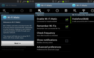 يمكن لمستخدمي أندرويد الاستعانة بتطبيق «Wi-Fi Matic» المجاني، الذي يقوم بشكل آلي بإيقاف أو تشغيل ميزة «واي فاي» بالاعتماد على مكان الشبكات اللاسلكية المحفوظة على الجهاز، ما يحافظ على شحن الجهاز المستخدم. وما يمّيز هذا التطبيق هو عدم استخدامه لنظام تحديد الموقع الجغرافي «GPS»، إنما يعتمد على ميزة المعلومات الخلوية «Cell Info» التي لا تستهلك شحن الجهاز أبداً.
