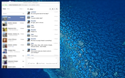 يحتاج المستخدم للدخول إلى «فيس بوك» من أجل استخدام نظام المحادثات الفورية الموجود داخل الموقع، إذ لا يتوافر تطبيق رسمي للمحادثات. لكن يمكن لمستخدمي متصفح «غوغل كروم» الاستفادة من إضافة Facebook Chat Pop-Outs، التي تفصل نظام المحادثة الفورية عن «فيس بوك»، وبالتالي لم يعد المستخدم بحاجة إلى فتح الموقع طوال الوقت لإجراء المحادثات.