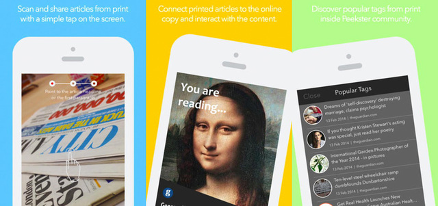 يوفر تطبيق Peekster المجاني أداة تبحث عن أي مقالة موجودة في الصحف الورقية، وتعرضها بشكل كامل على جهاز المستخدم الذكي.