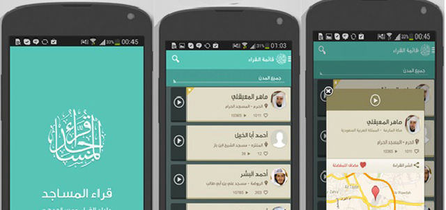 يسمح تطبيق قرّاء المساجد لمستخدمي الأجهزة التي تعمل بنظام «أندرويد» بمعرفة أسماء قُراء المساجد في شهر رمضان المبارك، مع تحديد اسم المسجد وموقعه الجغرافي على الخريطة، فضلاً عن إمكانية الاستماع إلى جزء من تلاوة القارئ. التطبيق يدعم أكثر من 500 قارئ، إضافة إلى أكثر من 35 مدينة في دول مختلفة.