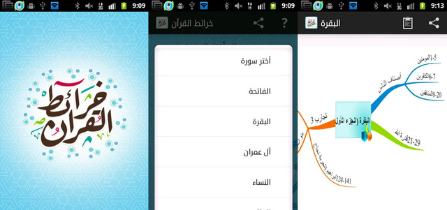 يمكن لمستخدمي نظام التشغيل «أندرويد» تجربة تطبيق «خارطة القرآن» Quran Map المجاني، الذي يُقدم خارطة تُعطي مُلخصاً للعبر الواردة وأسباب نزول الآيات في كل سور داخل القرآن الكريم.