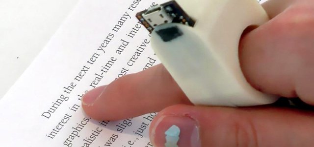 يعمل باحثون في «معهد ماسوتشوستس للتكنولوجيا» في الولايات المتحدة الأميركية على تطوير حل جديد يُتيح للمكفوفين وضعاف البصر وصولاً أسهل وأسرع إلى المواد المطبوعة، وذلك على هيئة جهاز صغير يمكن للمستخدمين ارتداؤه حول إصبع اليد، والإشارة به إلى الكلمات ليقرأها بصوتٍ عالٍ في الوقت الحقيقي.