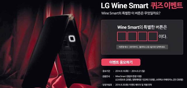 وأظهر موقع الشركة صورة معتمة لهاتف ذكي قابل للطي يحمل اسم «إل جي واين سمارت» LG Wine Smart، كما تظهر لوحة المفاتيح الخاصة به. ويتوقع أن يعمل بنظام التشغيل «أندرويد».