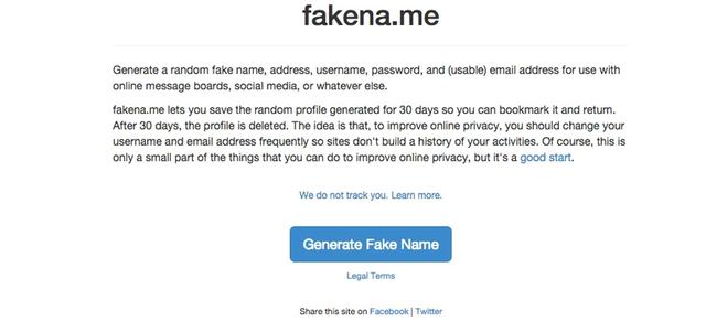 لذا يُمكن للمستخدمين تجربة موقع https://fakena.me، الذي يوفر أداة مجانية تسمح بتوليد أسماء وبيانات عشوائية مُزيّفة لاستخدامها لاحقاً في المواقع التي لا يثق المستخدم بها.