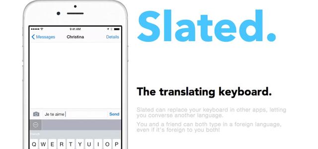 تتوافر لأجهزة «آي فون» و«آي باد»، الكثير من التطبيقات التي توفر ميزة الترجمة الفورية، فالمستخدم يلصق أي نص ليقوم التطبيق بالترجمة آلياً، لكن مع صدور النسخة 8 من نظام «آي أو إس» لأجهزة «أبل» الذكية، أصبح بالإمكان تغيير طريقة الترجمة التقليدية بشكل كامل. فتطبيق Slated الجديد يُقدم للمستخدمين لوحة مفاتيح تقوم بالترجمة الفورية لأي نص، إذ يكتب المستخدم الجملة باللغة الإنجليزية، ثم يحدد اللغة التي يرغب بالترجمة إليها ليقوم التطبيق بالبقية.