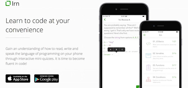 ومن التطبيقات المميزة لتعلم البرمجة، تطبيق يدعى Lrn، الذي يُتيح للمستخدم إمكانية البدء بتعلم البرمجة في الوقت الذي يريده وبأسلوب تفاعلي وبسيط ويعتمد على مسابقات وأحجيات، والتي بدورها قادرة على تعليمه كيفية قراءة وكتابة وفهم لغة البرمجة.