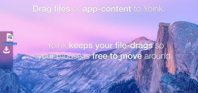 غير أن تطبيق Yoink، يتيح لمستخدميه إمكانية الاستفادة من قائمة جانبية خاصة به يمكن أن يُوضع فيها جميع الملفات المراد نقلها إلى مكان آخر عن طريق السحب إليها، وبعد ذلك سيكون بإمكان المستخدم التنقل براحة إلى مكان آخر الذي يرغب في وضع الملفات به، ثم يمكن إعادة سحب الملفات إلى المكان الجديد.
