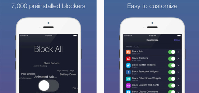وأحد هذه التطبيقات المجانية التي توافرت، هو تطبيق 1Blocker، الذي يأتي مع أكثر من 7000 نوع حجب، ويساعد المستخدم على توفير باقات الإنترنت الخاصة به كونه يخفّض مقدار الصرف إلى النصف أو أكثر أحياناً.