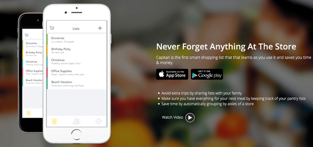 يحتاج المستخدم في معظم الأحيان إلى تسجيل لائحة المشتريات التي يرغب في شرائها عندما يذهب إلى السوق. لكن هذه التفاصيل الكثيرة قد تربك المستخدم وينسى بعض الأغراض المهمة، نظراً إلى تعدد الأماكن التي يجمع منها مشترياته، ولذلك يمكن الاعتماد على تطبيق Capitan، الذي يتيح إمكانية تسجيل قوائم المشتريات بشكل جماعي ومشترك. ويتيح التطبيق إمكانية فتح المجال لأفراد العائلة من أجل الدخول إلى القائمة وتسجيل طلباتهم ضمنها، مع تنبيه المستخدم عندما يقوم الآخرين بإضافة مشتريات جديدة، وكذلك تنبيه الآخرين بأن المستخدم موجود في السوق بمكان قريب لأغراض مهمة، وكل ذلك بأسلوب ذكي يساعد المستخدم مع الوقت على توفير الوقت والمال، مع دعم التطبيق لنظامي «أندرويد» و«آي أو إس» والساعات الذكية الخاصة بهذين النظامين.