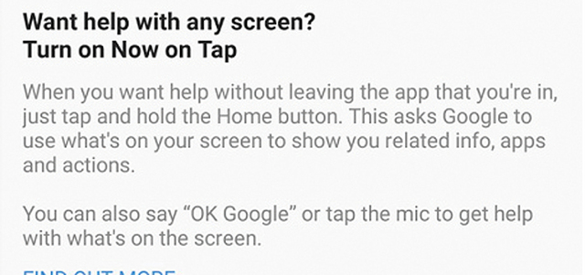 قدمت شركة «غوغل» ميزة جديدة تسمى Now On Tap ضمن أحدث نسخة من نظام «أندرويد 6» التي تحمل اسم «مارشميلو»، إذ تعمل هذه الميزة مع جميع التطبيقات ضمن النظام، وتقدم معلومات سريعة عبر عملية بحث ضمن «غوغل» من دون الحاجة إلى مغادرة التطبيق.