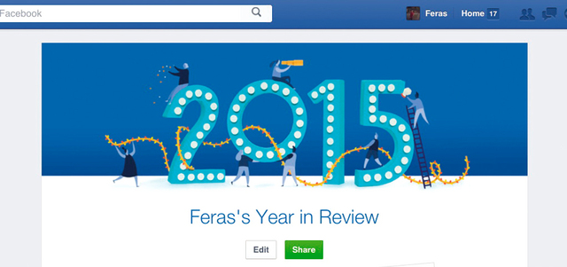 أطلق موقع «فيس بوك» أداته السنوية التي تسمح بمشاركة أجمل الذكريات في العام، والتي تحمل اسم Year in Review مع خيارات جديدة تختلف عن نسخة العام الماضي. وتعتمد الأداة بشكل كامل على «خوارزميات» ذكية تقوم باختيار أفضل 10 صور قام المُستخدم بمشاركتها خلال العام اعتماداً على عدد الإعجابات التي حصلت عليها والتفاعل من قبل الأصدقاء معها، لتقوم بجمعهم في ألبوم واحد لمشاركته مع بقية الأصدقاء تحت عنوان أجمل ذكريات العام. وأكد الموقع أن «الأداة حصلت على خيارات جديدة مثل إمكانية تعديل الصور قبل مُشاركتها واختيار صور أُخرى غير التي اختارتها (الخوارزميات) التي بدورها حصلت على تحسينات كبيرة مُقارنة بالعام الماضي». وعند استخدام الأداة لأول مرة، يتم عرض الصور التي تم اختيارها بشكل آلي، حيث يُمكن للمستخدم مشاركتها فوراً أو التعديل عليها، كما يُمكن تحديد خصوصية ألبوم الذكريات قبل مُشاركته بعد التأكد من الصور وترتيبها حسب التفضيل.