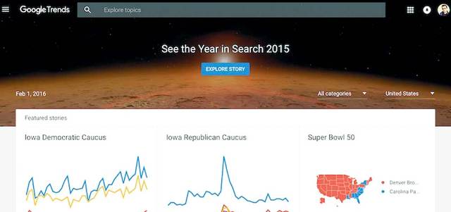 ويمكن لمستخدمي محرك البحث «غوغل» التّوجه إلى خدمة Google Trends التي تُتيح للمستخدم إمكانية الاطّلاع على أبرز الأخبار والقضايا اليومية التي تهمه، وتنتشر على الـ«ويب» بكثرة، إذ تُتيح الخدمة إمكانية تخصيص البلد الذي يرغب المستخدم في معرفة أبرز الأخبار المنتشرة فيه، التي تجري عليها عمليات بحث كثيرة.