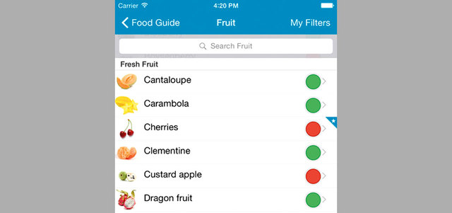 يشتمل التطبيق على دليل كامل يحتوي على 640 نوعاً من الغذاء. من المصدر