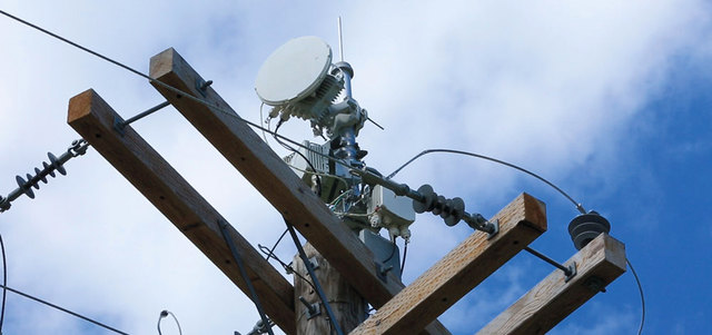 الهوائيات توضع أعلى أعمدة الكهرباء لتوليد مجال كهرومغناطيسي ذي سرعات عالية. من المصدر