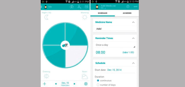 ويسمح التطبيق بإضافة الدواء الذي يتناوله المستخدم إلى قائمة خاصة، وتحديد الجرعات الخاصة به، فضلاً عن عدد مرات التذكير به يومياً، وتاريخ بداية تناول الدواء، إلى جانب إضافة القياسات المختلفة الخاصة بمستوى الغلوكوز والضغط والوزن، وغيرها من الأمور المهمة. ومن ثم يمكن تبادل هذه المعلومات مع الأطباء ومسؤولي الرعاية الصحية.