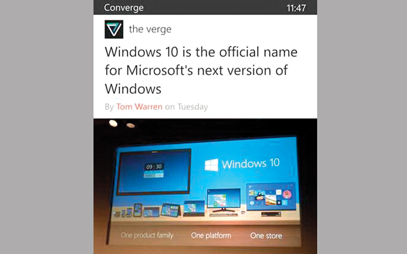 ينتمي تطبيق Converge إلى متجر «ويندوز فون»، ويندرج تحت فئة «الطقس والأخبار» News & weather، كما يدرجه المتجر ضمن فئة أعلى التطبيقات شعبية.