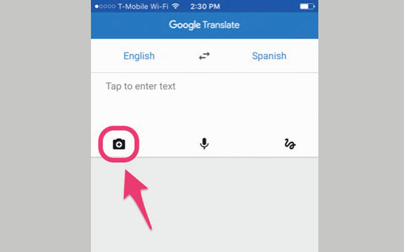 يتيح تطبيق ترجمة «غوغل» GOOGLE TRANSLATE ترجمة اللافتات والقوائم والملاحظات المكتوبة بخط اليد، فإذا كنت من مستخدمي هذا التطبيق وأردت استعماله في الترجمة من خلال توجيه عدسة الكاميرا إلى النص، فإنه يمكنك ذلك باتباع ما يلي: