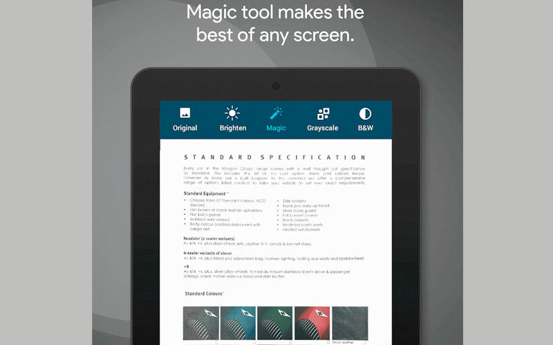 ويساعد التطبيق مستخدمه أيضاً على إعادة تعديل الصور التي تم مسحها بمستويات جديدة من التقريب والنسخ والإضافة والإلغاء، ويسمح بتفعيل وضعية التركيز على مناطق معينة من المستند، وبمسح الصور في الوضع الأفقي أو الرأسي.
