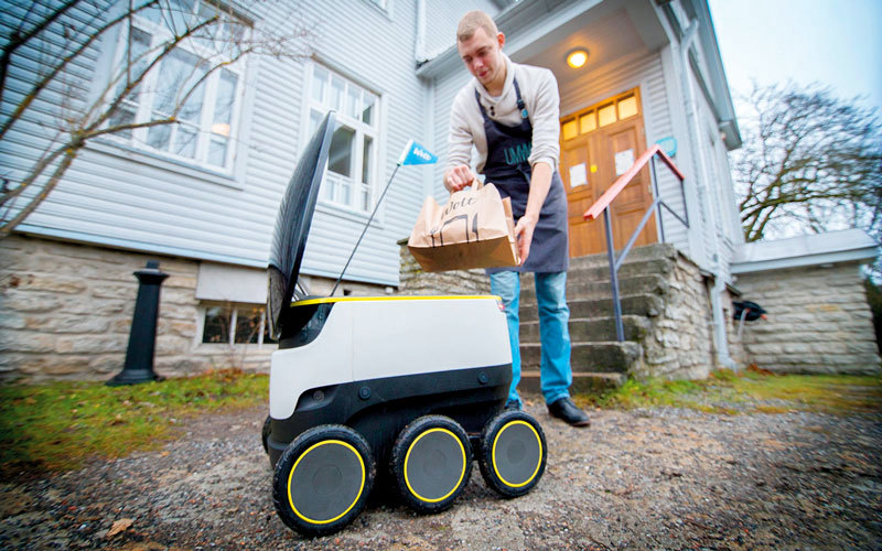 في الوقت الذي كانت عائلة مكونة من أب وأم وطفلتين صغيرتين، تعبر ميدان بوسط مدينة «ريد وود» في «وادي السيليكون» بولاية كاليفورنيا الأميركية، في طريقها إلى مدرسة الطفلتين، وقف بجانب العائلة «روبوت» صغير يسير على ست عجلات وتظهر به تسع كاميرات للرؤية، حاملاً وجبة إفطار جاهزة لعائلة تقطن بالشارع المجاور.