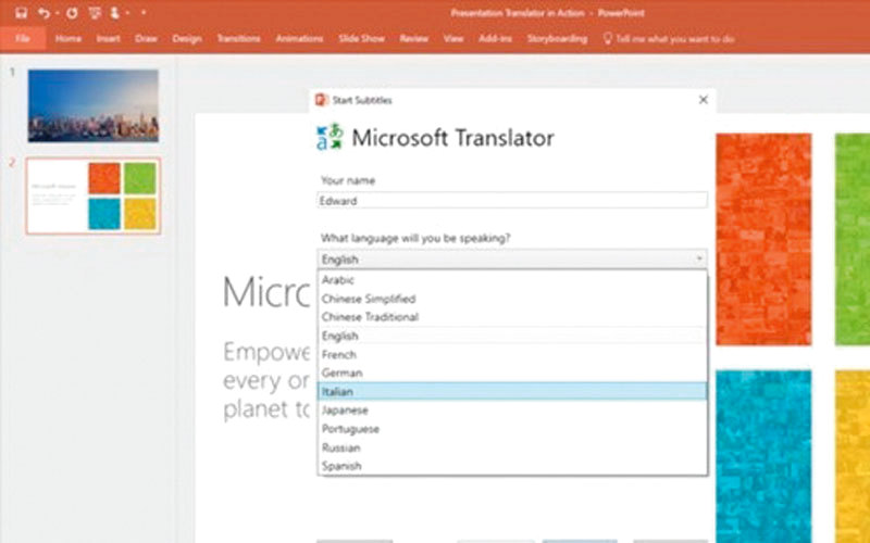 وبينت الشركة أن الأداة Presentation Translator الجديدة تعمل على إظهار شريط الترجمة بشرائح العروض التقديمية باللغات الأجنبية في الوقت الحقيقي، مشيرة إلى أنها تهدف من خلال هذه الطريقة إلى إزالة الحواجز اللغوية عندما يتم تقديم العروض بلغة لا يعرفها المستمع.
