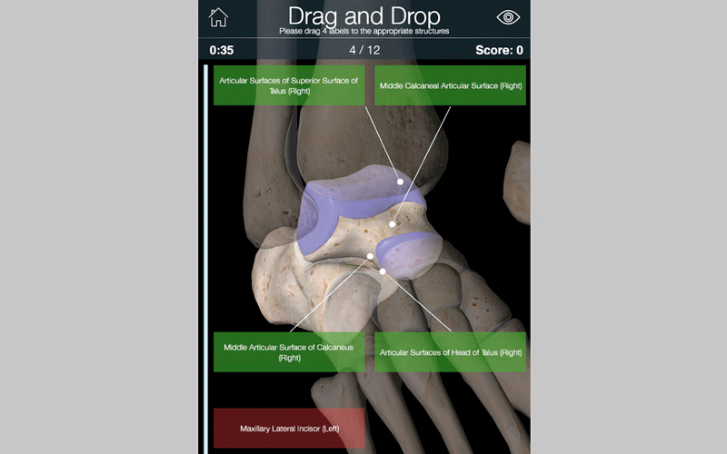 ويقدم التطبيق لمستخدمه مجموعة من الاختبارات التي تعتمد على الاختيار من بين خيارات متعددة، وملء الفراغات عن طريق سحب العظام وإفلاتها في المكان الصحيح داخل النموذج. كما يقدم عدداً كبيراً من أدوات التعامل وتَشَارك المحتوى مع الشبكات الاجتماعية.
