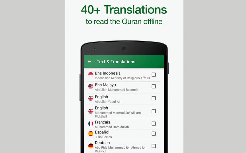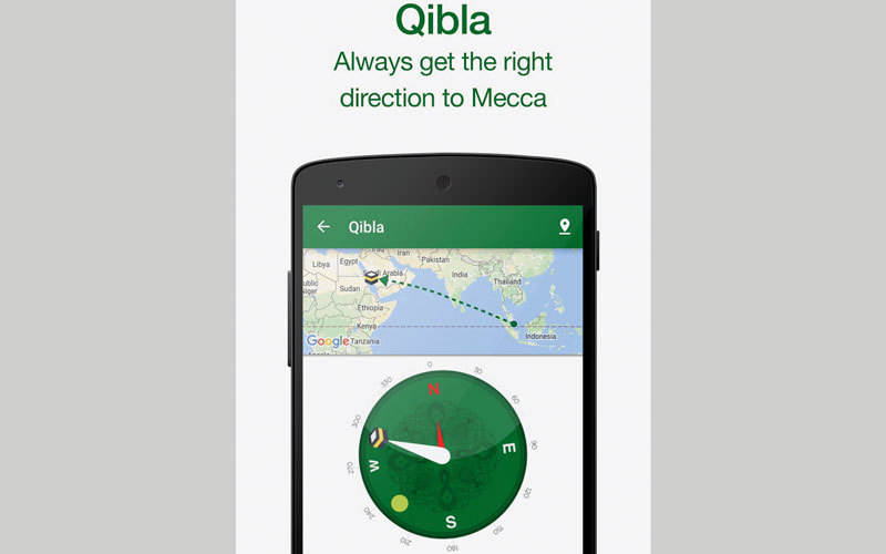 وأضاف أخيراً ملمح التجويد الملون، لتحسين طريقة نطق المستخدم للآيات، إلى جانب قراءة صوتية للقرآن الكريم لعدد من مشاهير القراء، وإتاحته أكثر من 40 ترجمة لمعاني القرآن الكريم، يمكن الوصول إليها من دون اتصال بـ«الويب». ويعرض التطبيق اتجاهات القبلة مع خريطة لتوضيح اتجاه مكة المكرمة، إضافة إلى ملمح إظهار المطاعم التي تقدم الطعام الحلال في المنطقة المحيطة بالمستخدم، فضلاً عن كشف أماكن المساجد الموجودة في الجوار.