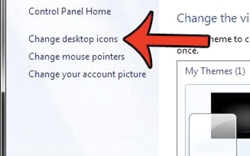 انقر بزر الفأرة الأيمن فوق أي منطقة فارغة عبر سطح المكتب، ثم مرر داخل النافذة التي ستظهر حتى تصل إلى خيار «إضافة الطابع الشخصي» Personalize في نهاية النافذة، وانقر فوقه، لتظهر نافذة جديدة، توجه إلى القائمة اليسرى منها، ومرر بين الخيارات الواردة عبرها حتى تصل إلى خيار «تغيير رموز سطح المكتب»Change desktop icons ثم انقر فوقه، وفي الصفحة الخاصة بإعدادات «أيقونات سطح المكتب» desktop icon settings، أضف علامة التأشير داخل المربع الصغير المجاور لخيار «لوحة التحكم» Control Panel، وبعد ذلك انقر زر تطبيق «التعديل» Apply، ثم انقر فوق زر «الموافقة» ok.