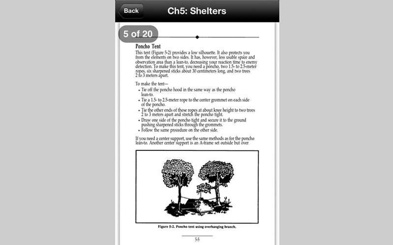 ويضم التطبيق فصولاً خاصة للبقاء على قيد الحياة في المناطق المختلفة، كالصحراء والبحار والمناطق الاستوائية والغابات والمناطق الباردة. ويعتمد على الأفكار الأساسية والإمكانات التي استخدمها القدماء من آلاف السنين، كما أنه يتيح لمحبي الحياة البدائية خوض التجربة بلا قلق.
