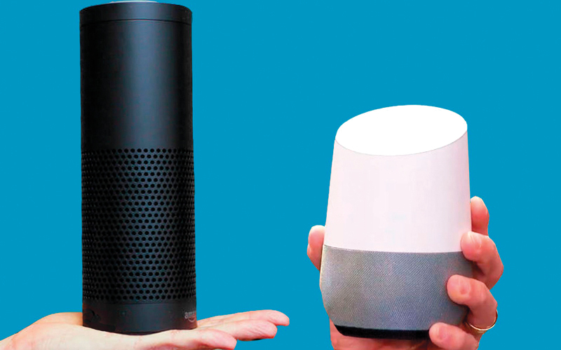 مع طرح «شركة غوغل الأميركية» فئة منتجاتها الجديدة من الأجهزة الصوتية المنزلية الذكية التي تحمل شعار «هوم»، أخيراً، بدأت الحالة السائدة في سوق هذه الأجهزة تتغير وتتحول من سوق تسودها حالة «لاعب واحد بلا منافس» تقريباً، إلى نزاع بين فئتين من المنتجات المتنافسة إلى حد كبير، الأولى هي منتجات «إيكو» من «شركة أمازون الأميركية»، التي جاوز عمرها عامين، وتضم طرزاً عدة، بعضها يمثل الجيل الثاني، فيما الفئة الثانية تتمثل بمنتجات «هوم» من «غوغل» التي يقل عمرها عن عام، ومعظم طرزها ظهرت للمرة الأولى خلال الأسبوع الأول من أكتوبر الجاري، إذ تضم هذه الفئة تشكيلة منتجات متنوعة، تخرج من خط إنتاج متكامل، له رؤية مستقبلية.