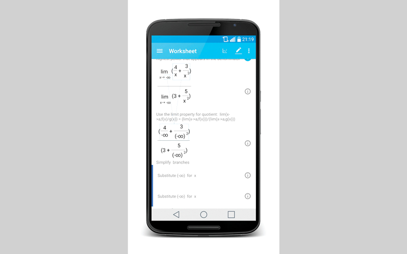 ويساعد التطبيق مستخدمه على حل المسائل الرياضية خطوة بخطوة، معززاً ذلك بالوصف والرسوم البيانية، كما يفسر سبب الحل على نحو معين لكل خطوة، ويمنح أهمية خاصة لبعض الخطوات المهمة.