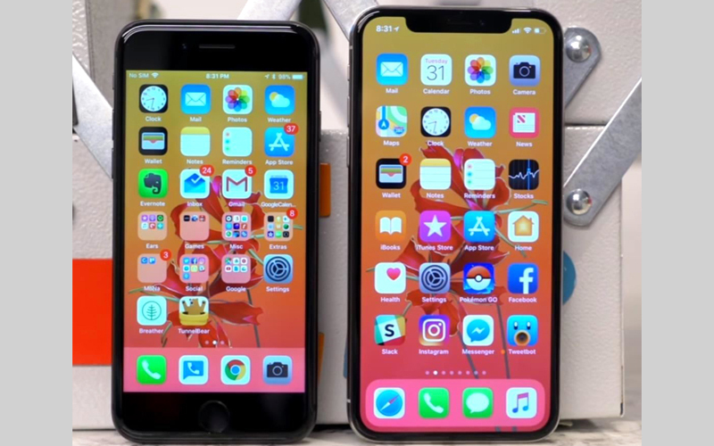 تكاد الحواف تكون مختفية وغير موجودة في «آي فون إكس»، لكن هذا قد يسبب بعض الازعاج، لاسيما مع تشغيل بعض التطبيقات، حيث إنه عند تشغيل الهاتف من أحد الجوانب لمشاهدة فيديو مثلاً، يجب الاختيار بين ما اذا كان سيتم الاحتفاظ بالفيديو اصغر حجماً للتمكن من رؤية كل شيء، أو توسيعه ليتناسب مع الشاشة الكاملة للجهاز، مع قطع الجزء العلوي والسفلي من الفيديو، بينما في «آي فون 7» تعمل الشاشات ذات الحواف الظاهرة بشكل جيد، ولا تسبب مثل هذا الازعاج عند مشاهدة الفيديو.
