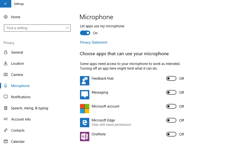 لكن بعض المستخدمين لا يفضل وصول التطبيقات إلى الميكروفون في جهازه. فإذا أردت عدم السماح للتطبيقات الموجودة على الجهاز بالوصول إلى الميكروفون، يمكنك اتباع الخطوات التالية: