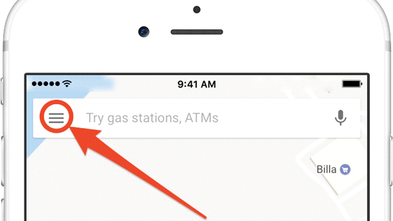 ■انقر فوق تطبيق خرائط «غوغل»، ثم انقر فوق قائمة التنقل في التطبيق.