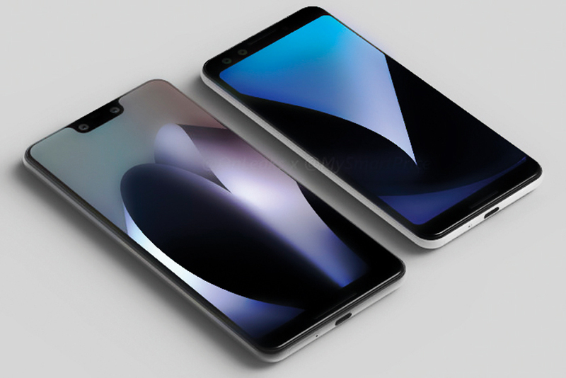ووفقاً لهذا التصميم، سيأتي الهاتف بشاشة بحجم أكبر، تمتد من الحافة إلى الحافة، بالإضافة إلى شق علوي يشبه الموجود بهاتف «آي فون إكس»، وفي الصور المسربة تبدو واجهة الهاتف قريبة الشبه من واجهة هاتف «بيكسل 2 إكس إل»، مع الحواف النحيفة، لكنّ هناك نتوءاً في الأعلى، ما يعني أن الهاتف سيأتي بشاشة نسبة العرض للارتفاع بها هي 19 إلى 9، وهي أبعاد ترجح أن تكون مساحة الشاشة 6.2 بوصات، مع الشق العرضي المثير للجدل، وذلك وفقاً لتسريبات «ماي سمارت برايس»، أو 5.3 بوصات، وفقاً لتسريبات «أندرويد هيدلاين».