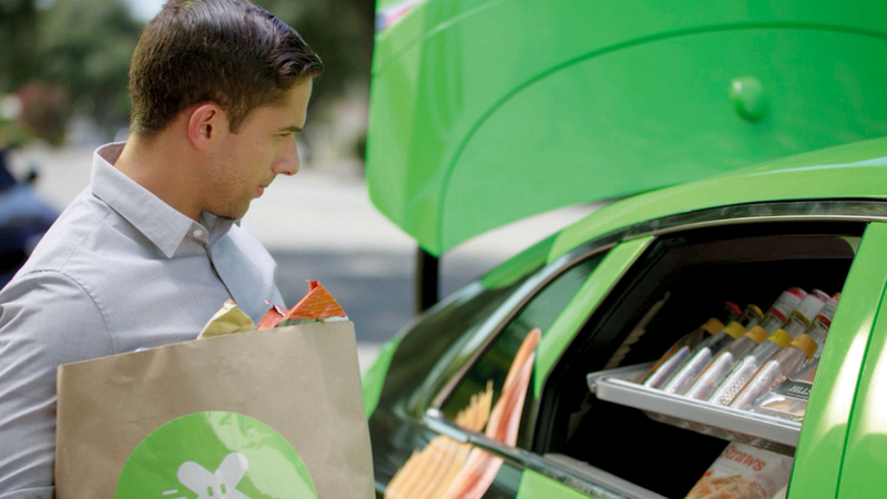 وبالإضافة إلى إمكانات توصيل المشتريات المطلوبة مسبقاً، فإن المركبة مجهزة أيضاً بأرفف المتاجر المتحركة في نوافذها الخلفية، ما يجعلها تنفّذ تجربتين للتسوق، الطلب المسبق من المتجر ثم التسلّم عبر المركبة، والتسوق مباشرة من أرفف العرض، التي تمكّن المستهلك من الاختيار والشراء في الموقع أمام منزله.