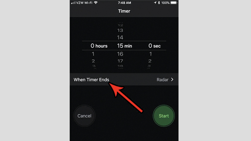 ■حدد المدة المرغوبة ثم انقر فوق «عندما ينتهي المؤقت» When Timer Ends في منتصف النافذة.