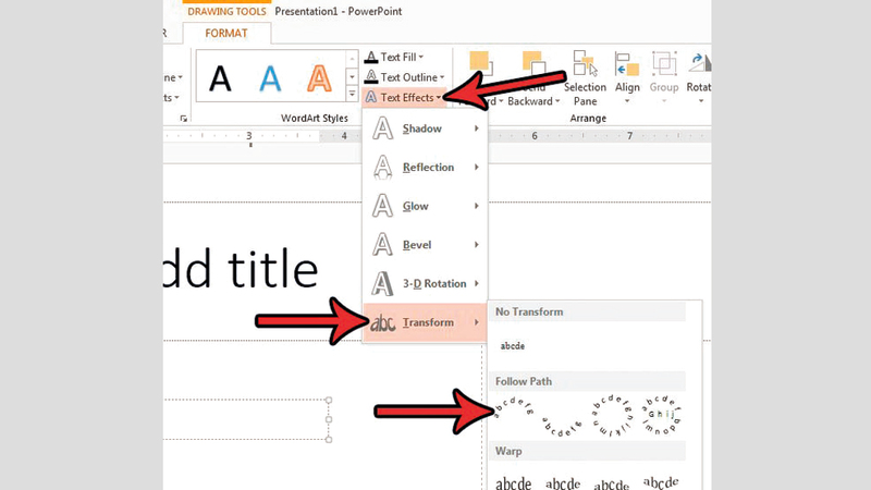 يحتاج عرض المحتوى بشكل بصري إلى إضافة الصور ومقاطع الفيديو، وأيضاً تنويع شكل النص عبر تحريكه ليتخذ شكلاً دائرياً، وغير ذلك. ويساعد برنامج «مايكروسوفت باور بوينت» في إتمام هذه المهمة. فإذا كنت من مستخدمي هذا البرنامج، فإنه يمكنك كتابة النص الذي ترغبه بشكل دائري باتباع التالي: افتح العرض الذي ترغب في تغيير بعض نصوصه إلى الشكل الدائري، وتوجه إلى يسار الشاشة، ثم انقر فوق الشريحة التي ستجري عليها التغييرات، ومن ثم انتقل إلى أعلى يسار النافذة، وانقر قائمة «الإدراج»، ثم انقر خيار «مربع النص» داخل قسم النص في القائمة الفرعية التي ظهرت أعلى الشاشة، وبعدها اسحب مربع النص في الشريحة واكتب النص الذي ترغب في ظهوره بشكل منحنٍ، وعندها ظلّل النص وانقر فوق تبويب «الشكل»، ثم انتقل إلى قسم تأثيرات النص، وانقر خيار «التأثيرات»، ومن النافذة المنسدلة انقر خيار «التحويل»، لتظهر نافذة جديدة تضم خيارات عدة، وهنا انتقل إلى قسم «اتبع المسار»، واختر الشكل الدائري الذي تريده للنص.