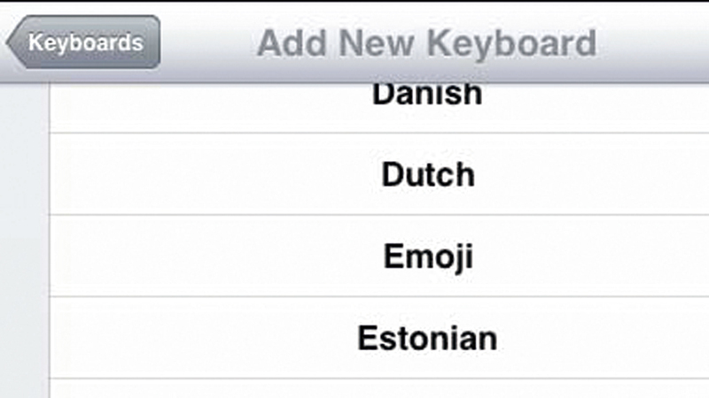 تضفي «الرموز التعبيرية» emojis قدراً كبيراً من المرح على المحادثات والمراسلات. كما أنها أحياناً تغني عن الكلمات، لذا يزداد استخدامها يوماً بعد يوم. والحقيقة أن أجهزة «آي باد» تحتوي على لوحة الرموز التعبيرية افتراضياً، لكن يجب على المستخدم أن يفعلها أولاً للبدء في استخدامها. فإذا كنت من مستخدمي أجهزة «آي باد 2»، يمكنك تفعيل لوحة مفاتيح الرموز التعبيرية باتباع ما يلي: توجه إلى تطبيق «الإعدادات» settings، وتبدو الأيقونة الخاصة به في شكل ترس رمادي اللون، ثم انقر فوقه، وبعدها مرر داخل الجانب الأيسر من الشاشة، وانقر تبويب «الإعدادات العامة» General، ثم انقر فوق زر لوحة المفاتيح Keyboard في نهاية الشاشة، وبعد ذلك انقر فوق رأس السهم المجاور لزر «لوحات المفاتيح» Keyboards، وعندها انقر داخل النافذة الجديدة فوق خيار «إضافة لوحة مفاتيح جديدة»Add New Keyboard، ومن ثم مرر للأسفل داخل النافذة الخاصة بإضافة لوحات المفاتيح حتى تصل إلى خيار «الرموز التعبيرية» emojis وانقر فوقه.