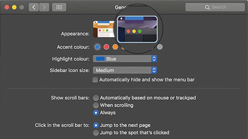 يحفل نظام التشغيل «Mac OS Mojave» بعدد كبير من المزايا التي تساعد المستخدم على أداء المهام المرغوبة بسلاسة. ومن أبرز الميزات التي قدمها هذا النظام تفعيل الوضع الداكن Dark Mode، الذي يحافظ على البصر أثناء التصفح أو العمل على الحاسب في المساء وفي الأماكن خافتة الإضاءة. ويتميز هذا الملمح بكفاءة كبيرة عبر النظام، ويمكن استخدامه مع عدد كبير من التطبيقات كتطبيق الصور والبريد والرسائل وغيرها. ويمكنك تفعيل الوضع الداكن باتباع هذه الخطوات: