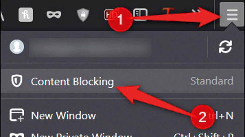 - انقر فوق Content Blocking وإذا لم يظهر فمعنى ذلك أن متصفحك لم يتم تحديثه إلى الإصدار Firefox 65، لذا قم بتحديثه.