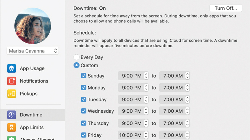 قدمت شركة «أبل» ملمح Screen Time مع نظام التشغيل الخاص بأجهزة «ماك»، وذلك لمساعدة المستخدمين على معرفة الوقت الذي يقضونه على حاسباتهم. ومن خلال الملمح يمكن للمستخدم تحديد وقت معين للتطبيقات المختلفة، وهو ملمح مهم جدا للمستخدمين من الأطفال. فإذا كنت من مستخدمي أجهزة «ماك»، فإنه يمكنك تشغيل الملمح على جهازك باتباع ما يلي: انقر قائمة «أبل» في أعلى يسار الشاشة ثم فوق خيار تفضيلات النظام ضمن النافذة التي ستظهر، ومن ثم انقر ملمح «وقت الشاشة» Screen Time. وإذا كنت تستخدم ميزة «المشاركة العائلية» Famil Sharing، انقر أيقونة ملفك الشخصي، أما إذا لم تكن تستخدم هذا الملمح فلن تظهر أمامك خيارات. وبعد ذلك توجه إلى نهاية الجانب الأيسر من النافذة، وانقر خيار «البدائل» Options، ثم انقر خيار «التشغيل» Turn On، ومن ثم استخدم الميزات الموجودة في الجانب الأيسر من الصفحة لتغير خيارات وقت الشاشة حسب رغبتك.