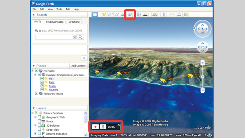 طرحت شركة «غوغل» ميزات إضافية مع طرح الإصدار الاحترافي من تطبيق Google Earth، حيث سمحت للمستخدم بإنشاء الجولات باستخدام التطبيق وإضافة الأماكن والصور، فضلاً عن مشاهدة المعالم واستكشاف الأرض وبعض الكواكب. كما سمحت باستخدام ميزة «السرد الصوتي» Audio Narration. ويعني ذلك أن بإمكان المستخدم الاستعانة بـ«ميكروفون» جهاز الحاسب في التعليق على أحداث الجولات التي ينشئها باستخدام التطبيق، والاحتفاظ بملف يحتوي على الصورة والصوت بصيغة Kmz. فإذا كنت ترغب في استخدام هذه الميزة إليك النصائح التالية: عند إنشاء جولة جديدة، انقر أيقونة «الميكروفون» في نهاية الجانب الأيسر من نافذة العرض بدلاً من زر التسجيل ليبدأ التطبيق في تسجيل صوتك من «ميكروفون» الحاسب.