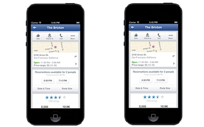 وأفادت «فيس بوك» بأنه بات بإمكان المطاعم المُسجلة في خدمة OpenTable استقبال الحجوزات بشكل فوري عبر «فيس بوك»، كما أصبح بإمكان المستخدمين الحجز من دون الحاجة إلى فتح حساب في الخدمة.