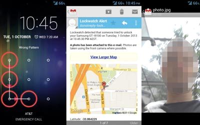 لذا يمكن الإستعانة بتطبيق Find Stolen Phone المجاني، الذي يقوم بإرسال رسالة بريدية للمستخدم بمحاولة فتح الجهاز مع تحديد الموقع الجغرافي والتقاط صورة للشخص الذي حاول فك القفل.