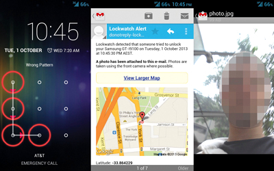 لذا يمكن الاستعانة بتطبيق «Lockwatch | Find Stolen Phone» المجاني، الذي يرسل رسالة بريدية للمستخدم بمحاولة فتح الجهاز، مع تحديد الموقع الجغرافي والتقاط صورة للشخص الذي حاول فك القفل.